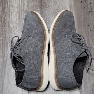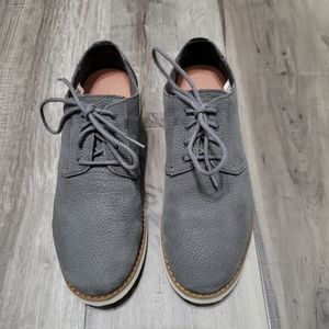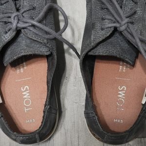 Pre-owned and in good condition. Men's Tom's Preston Oxford casual shoes. Color gray. Leather/suede upper - soft to the touch. Some normal wear on the bottom sole at the heels. See pictures.