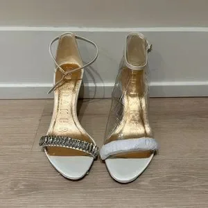 Ted Baker Saralia Strappy Satin Heel White Ivory Women’s 7 with Jewel Detail