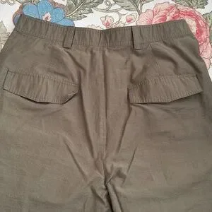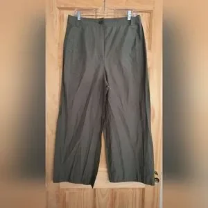 Size L Zara wide leg pants. Button/Zip closure. Faux back pockets. Nylon like feel. Care tag ripped out. Approximate measurements: inseam 25.5" Leg width 11.5". Good used condition!