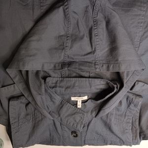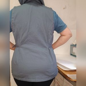 Hooded vest, Maurices size XL, gray color, 100% cotton, clothes with buttons, has sliding pockets, straps to adjust the waist, denim, new without tag.