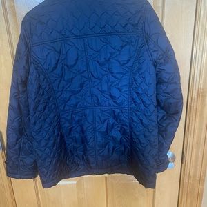 Lands’ End lightweight quilted jacket. Like New. Navy blue. Double pockets on outside and single pocket on the inside of the jacket.