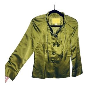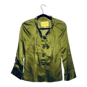 Flores & Flores lime green silky jacket. Formal jacket with jewel buttons. Small spot on the inside of jacket shown in photos. Size 8.