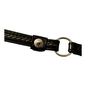 Black with 2 1/2” metallic strip and tote has the signature Coach C
