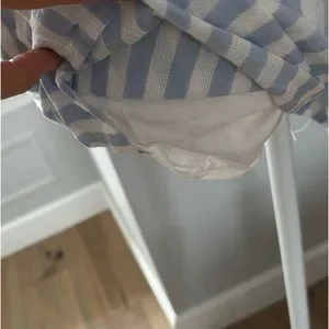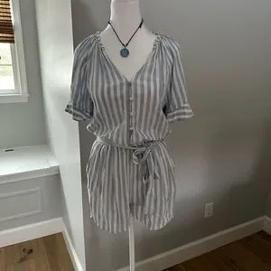 Paige Romper. Blue and white striped. Shorts have a white lining- see pic. Belted with pockets. Worn 1x.