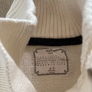 Zara knitted cream / off-white sweater, size 6-7, zipper neck, gently worn maybe a couple times, unisex, please see all pictures as they’re part of the description