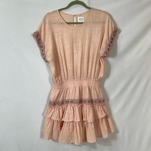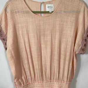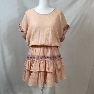 MISA Los Angelos Dress Size Small. Layered Mini Dress. Lightweight Gauzy Fabric. Lace Accents. Some Variation In Fabric Colors And Small Black Marks Near Left Shoulder. Please See Photos.