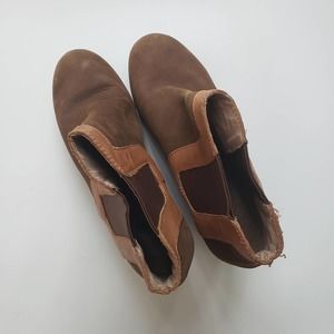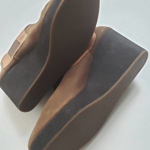 Tommy Bahama Leather Chunky Platform Wedge Booties Tan & Brown Size 9