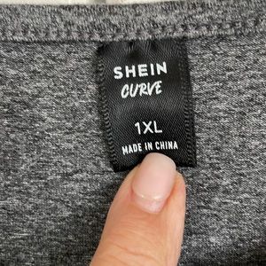 SHEIN Curve 1XL Dark Gray Faux Wrap Dress w/ Short Sleeves and Rouching at Hem