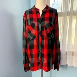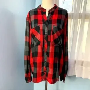 Beachlunchlounge Red and Black Plaid Check Button Down Shirt