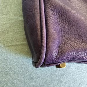Used condition with wear and rubbing on all the corners (front and back, top and bottom), tarnishing of the hardware, green oxidation around all of the studs on the bottom. Inside is in great condition, has dash lining. The underside of the leather that is woven through the chain strap is raw leather and you can see some rubbing to that side. This is the regular size MAC.