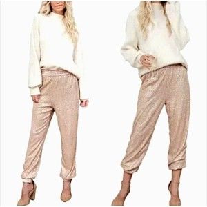 Anthropologie Melora Joggers Pink Metallic Rose Gold Elastic Waist Pants XS