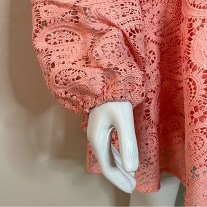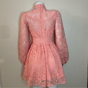 Blush pink V-neck floral crochet lace long sleeve mini dress