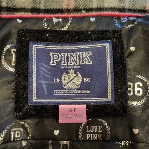 EUC, cute plaid print. Faux fur trimmed, removable hood. Double button up. Pink, grey, and black plaid color. Keep warm this season sporting your new favorite PINK brand jacket.
