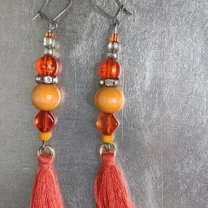 Brand New Earrings Orange Glass Tassel Lightweight Eclectic Travel Handmade Fun