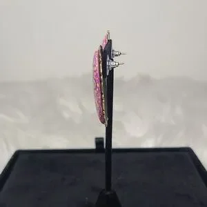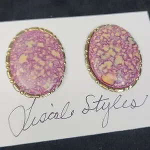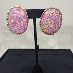 Vintage Stud Earrings Oval Shape Gold Tone Lavender Pink Marbling Everyday Retro