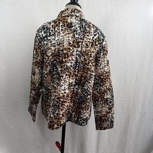 Ruby Rd Crinkle Jacket Womens Plus 2X Animal Print Cheetah Print Zip Up