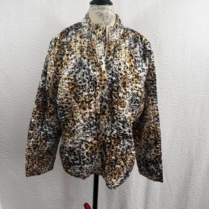 Ruby Rd Crinkle Jacket Womens Plus 2X Cheetah Print Zip Up Mock Neck Lined