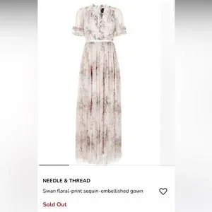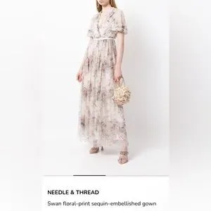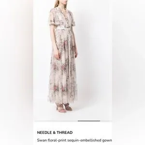 NWT Needle & Thread Floral Swan Sequin Bodice Gown