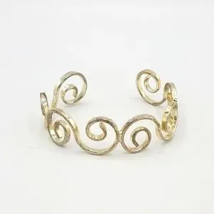 Best Silver tone Scroll Coil Curl Curlicue Whorl Spiral Cuff Bangle Bracelet Vtg