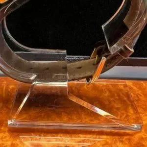 A Reference 5850MB, it’s housed in a 32mm x 45mm yellow gold Tonneau case with a sapphire crystal, and a signed crown. Never professionally polished to wear down the gold, only hand polished at home, It features a silver dial with printed, stylized Arabic indices, a secondary time zone sundial at 12:00, a third time zone dial at 6:00, and a date window at 3:00.