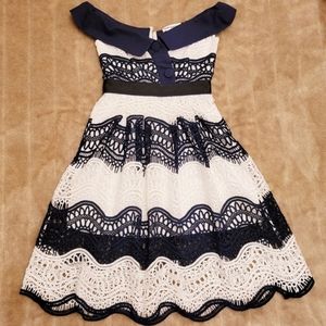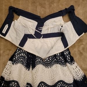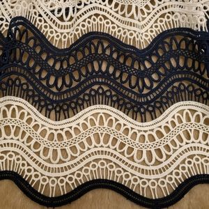 NO OFFERS. PRICE FIRM. NO EXCEPTIONS. Self-Portrait Off-the-Shoulder Wave Guipure short dress. size 4. one area where material is slightly pulled from the zipper at the waistband, as shown in pictures. insanely beautiful and gorgeous lace. self-portrait brand printed into hanging straps. a sophisticated and elaborate design crafted from intricate guipure lace. The Dress is pleated from the contrast black grosgrain waistband, the skirt obtains a voluminous silhouette with a mini-length interior lining for modest coverage, while the top boasts a flirtatious off-the-shoulder style. Finished with large button details and zip at the back of the dress. NO OFFERS. PRICE FIRM.
