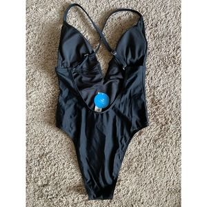NWT Cupshe Womens V-Neck Swimsuit One Piece Spaghetti Strap Size XS Black