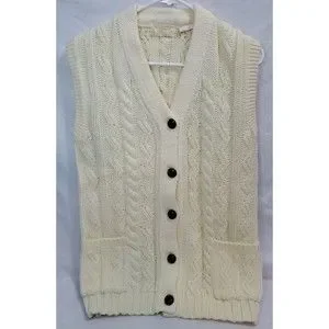 Butter Yellow Ivory Sweater Vest. No size tag, measurements are approximate may be some slight discoloration due to storage (red cedar chest) that could wash out. Please view pictures carefully. It's a super snuggly beautiful sweater vest!