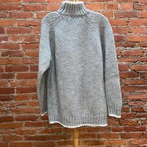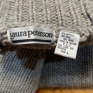 Laura Peterson 80s Vintage Gray Wool Blend Tunic Chunky Knit Sweater w Pockets L