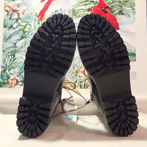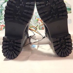 WOMANS WINTER BOOTS SIZE 7 1/2 THICK SOLE THAT GRIPS, LACE UP, THE TOUNGE OF THE BOOD IS A WARM FUR. THE COLOR IS BLACK HAS A ZIPPER ON THE SIDE FOR EASY ON AND OFF.