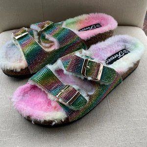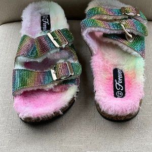 Forever21 Women Sandal Shoes Multi Color Bling Faux Fur Shoes Size 6.5