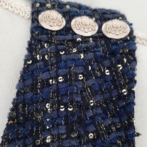 White House Black Market Lurex Sequin Navy Tweed Dress Size 0 NWT