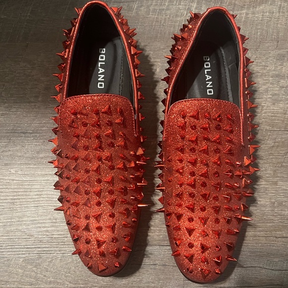 Brand: Bolano Size: Color: Royal Red Condition: Good Condition, Pre-Loved | Slip on Tuxedo Luxury, Spiked Shoes, Handmade Men Rivets, Dress Shoes, Prom, Wedding, Party
