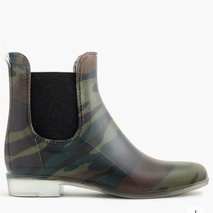 J.Crew Matte Chelsea Rain Boots, Camo, Size 7, EUC
