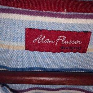 Allan Flusser men's Blue Stripe Weekend Polo Shirt Size XXL
