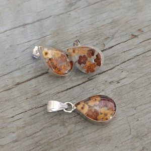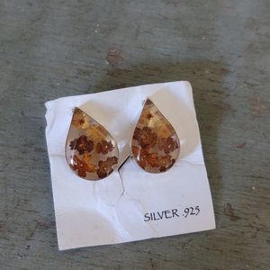 Dainty, feminine 925 sterling pressed flowers earrings (pierced) and pendant set!