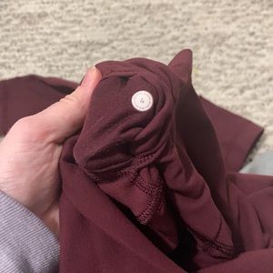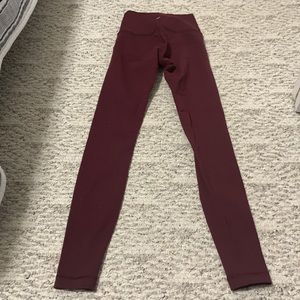 25 inseam. Maroon leggings size 4. I think wondertrain because they are pretty compressed but not 100 sure. Pulling pictured