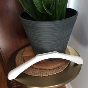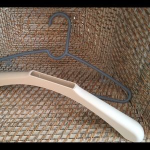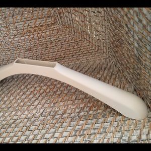 20 HANGER SHOULDER SHAPERS. PROTECT THE SHOULDER SHAPE OF YOUR SWEATERS, BLOUSES, JACKETS. FITS MOST ANY STYLE OF HANGER. COLOR IS WHITE. MADE OF POLYPROPYLENE. HARD SURFACE CAN BE WIPED WITH SOAP AND WATER. FIRM, BUT FLEXIBLE. REMOVABLE. FITS ON OR CAN BE TAKEN OFF THE HANGER ANYTIME.
