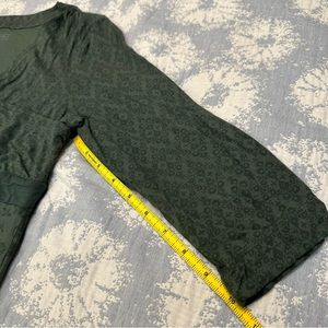 NWT Athleta faux-wrap dress in tonal green floral print, size S. Three-quarter sleeves. Price tag missing, but hang tag still attached.
