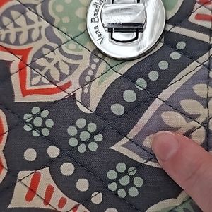 Cute retired vera Bradley purse in floral print! has some stains and scratches swe in photos. still has a lot of use left in this cute purse. inside does not have any stains.
