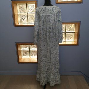This full length cotton gown or robe has long sleeves and buttons down the front.  It is from Eileen West and has side pockets and lace inset detailing.  It is a size S with these approximate measurements: