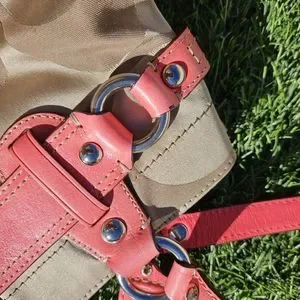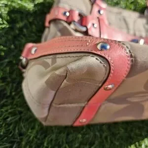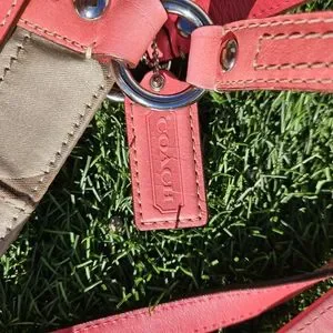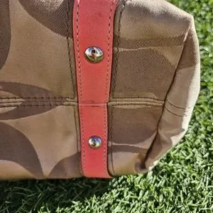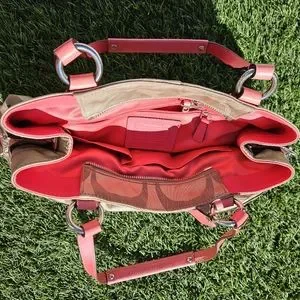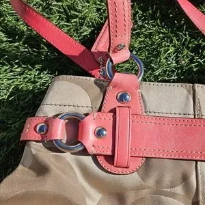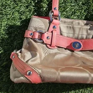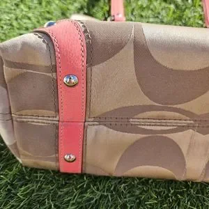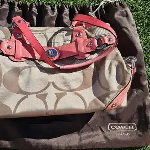 Coach Signature Canvas Shoulder Purse Satchel Neon Coral **WITH Coach Dust Bag**