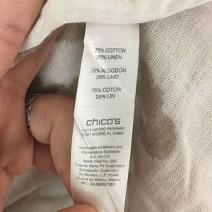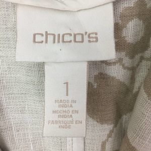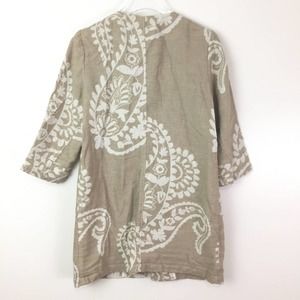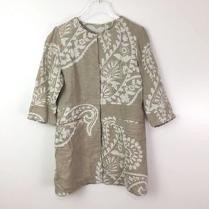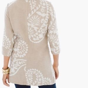 Chico's Tan and White Linen Paisley Print 3/4 Sleeve Long Jacket Size Medium