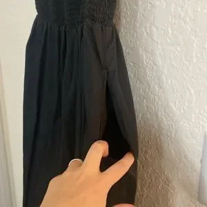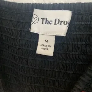 The Drop, size medium, black ruffle strap and bottom midi dress with pockets and slip, like new worn once. Live on Amazon: https://a.co/d/buo57dQ