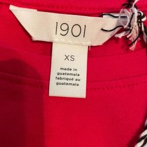 1901 Women's Red Bloom Short Flutter Sleeve Jewel Neck Cotton Blend Blouse sz XS