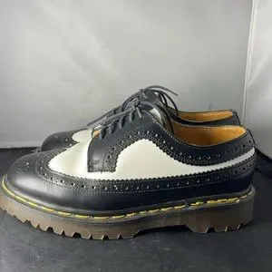 VINTAGE DR. MARTENS Black White Leather Wingtip Oxfords Made in England