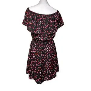 Dress Black w/ Red Cherries Flounce Top Elastic Waist Size M like …