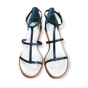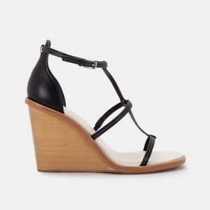 Dolce Vita | Jeana Black Leather Strappy Sandal Wedges | Size 8.5