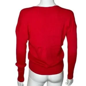 Elodie Women's Red Ribbed Knit Surplice Neck Long Sleeve Pullover Top sz S