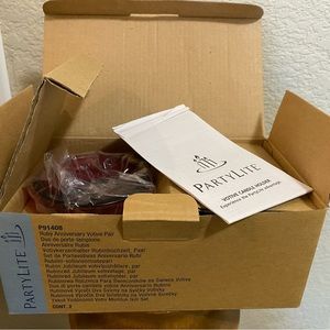Pair (2) of PartyLite ruby red anniversary votive/Tealight holders. Excellent new condition in original box and packaging. Never used. Glass.