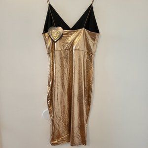 Club L Gold Metallic Midi Dress. some spandex. never worn. Size 14 but cut like a 10 - 12. (slim fit)